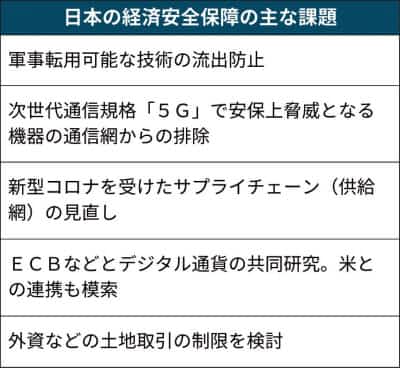 日本政府も19年から安保上のリスクがある通信機器を全省庁で調達しないと決めた。今年4月には国家安全保障局(NSS)に経済安保を専門とする経済班を発足させた。約20人の体制で先端技術の流出防止などを検討している。