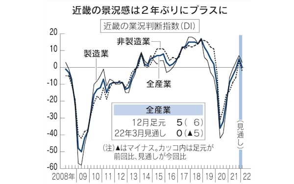 大企業のうち製造業、非製造業とも3期連続のプラスだった。製造業全体ではプラス1.1。足元の円安で半導体製造装置や自動車向けの工作機械などが好調だった。逆に食料品製造業は円安による原材料価格の上昇でマイナス12.7だった。