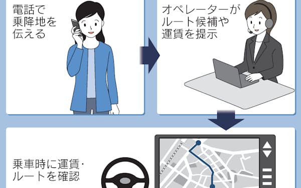 高額な方の「即時」はデータ分析を使った配車は「優先」と同じ半面、運転手が配車を指示されたときに拒否できないのが特徴。長距離狙いの運転手が配車を拒む事例を無くし、利用者の待ち時間を削減する。