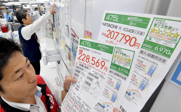 有楽町店(東京・千代田)では10時開店の1~2時間前から手作業で値札の付け替え作業を始めた。地下1階にある白物家電売り場の浅井裕司主任は「3日である程度まで変え、1週間で店内全商品の張り替えを完了させる」と話す。