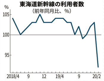 JR東海は2020年3月期の連結決算で、売上高が前期比1%増の1兆9020億円を見込んでいる。鉄道の運輸収入は1日平均で40億円弱に上り、影響が長引けば、21年3月期の業績にも大きな影を落とすのは必至だ。