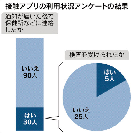 別の人は「保健所に連絡したが『アプリの通知は注意を促す目的』と言われ、接触の事実をあまり重要視していないように思えた」と記入した。「何も対処してもらえず不安をあおるだけのアプリ」との批判もあった。