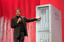 そこで生まれたのがデータベース専用機「エクサデータ」だ。サンが設計したサーバーに、オラクルのデータベースソフトなどを組み込んだ。一晩かかっていたバッチ処理が10分で終わる高い処理性能が特徴だが、売り物はそれだけではない。垂直統合によるコスト競争力だ。