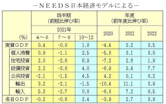 設備投資は前期比0.9%増と、5期連続のプラス。住宅投資はローン減税など政策効果もあって前期の1.8%増から3.0%増に拡大した。石油化学製品や飲料などの在庫が増え、実質成長率に対する民間在庫の寄与度は0.2ポイントとなった。一方、公共投資は民主党政権の公共事業削減が響き、5.8%減った。