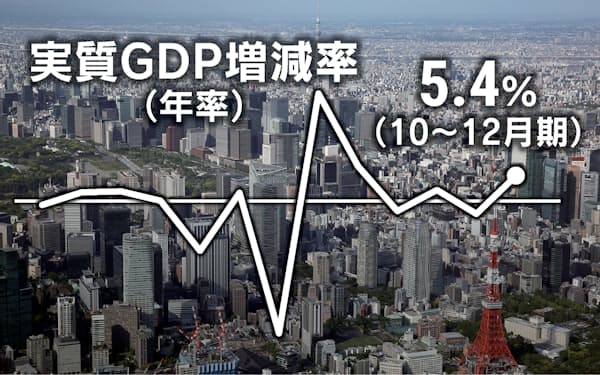 前期比年率でみた昨年10~12月期の実質成長率は、日経グループのQUICKがまとめた民間予測の中央値(2.1%減)を上回った。生活実感に近い名目成長率は0.6%減、年率換算では2.5%減で、2期ぶりにマイナスとなった。