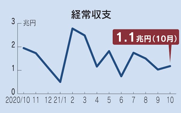 同時に発表した10年の経常黒字は前年に比べ28.5%増の17兆801億円で、3年ぶりに前年の水準を上回った。〔日経QUICKニュース〕