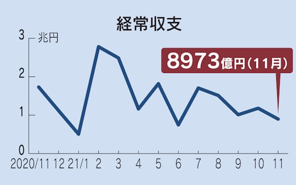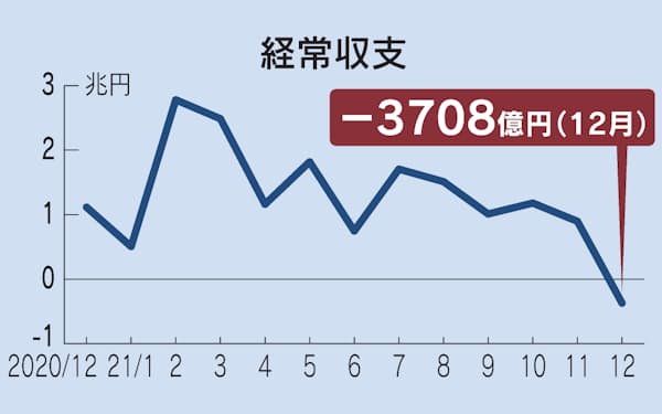 12月の経常黒字、前年同月比30.5%増の1兆1953億円