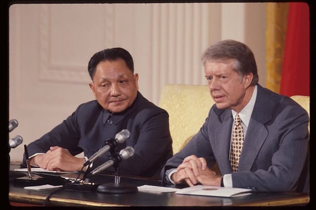 冷戦下にあった1977〜1981年の大統領在任中は「人権外交」を標榜。78年にエジプトとイスラエルの歴史的和解となったキャンプデービッド合意を実現した。72年に当時大統領だったニクソン氏が電撃的に中国を訪れて道筋をつけた米中関係改善の流れを継承し、カーター政権だった78年12月に翌1月に国交を樹立すると発表した。
