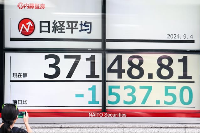 3日の米株式市場でダウ工業株30種平均は前週末比626ドル(1.50%)安の4万0936ドルとなり、8月5日以来の下げ幅を記録した。ハイテク株の比率が高いナスダック総合株価指数も3.3%安となった。