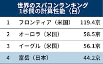 専門家の国際会議が半年ごとに公表するランキングで、富岳は1秒あたり44.2京(京は1兆の1万倍)回の計算速度...